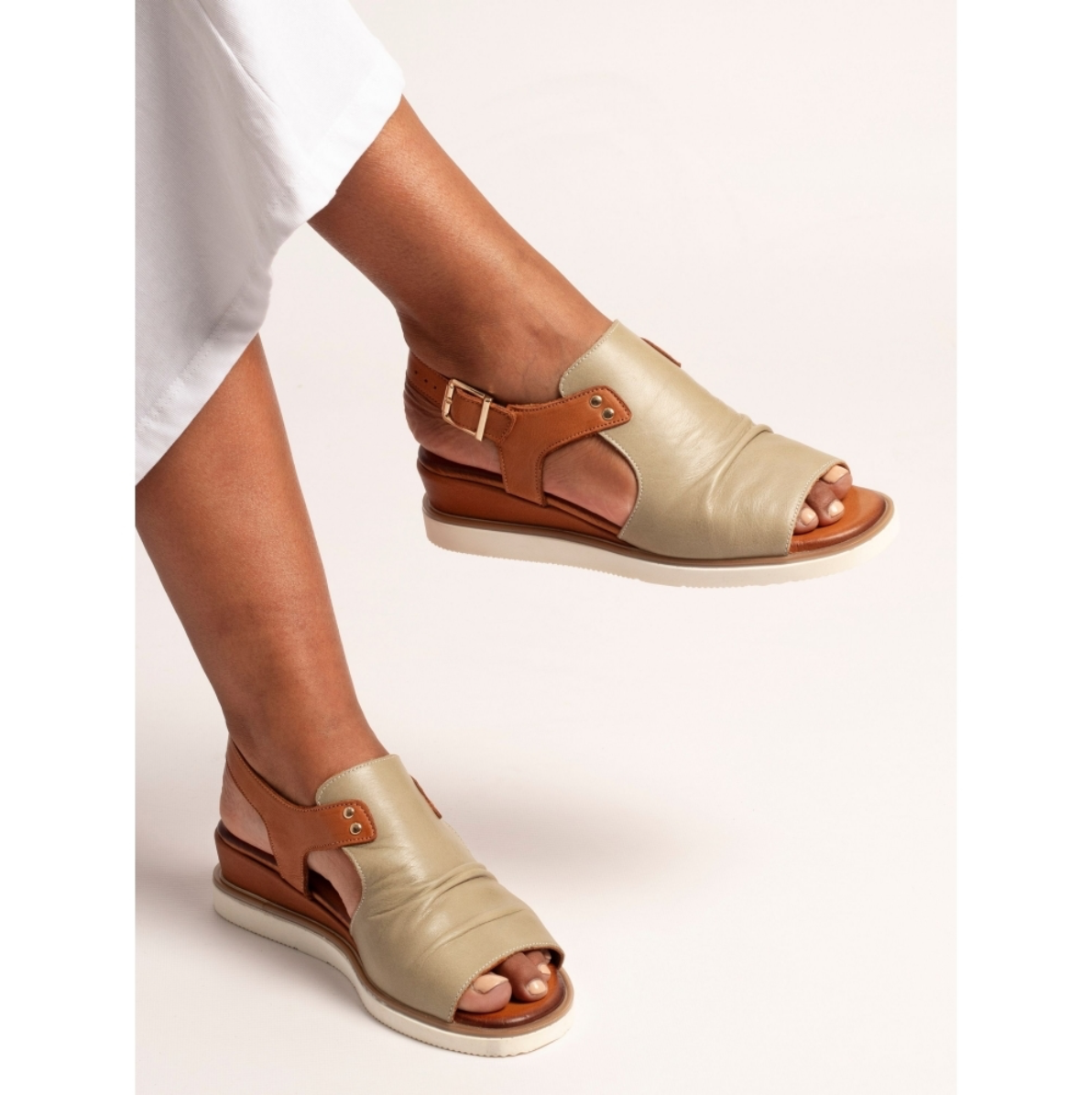 The Steffi Sandal combines premium leather with a modern wedge sole for everyday comfort and style. The ruched front panel adds a contemporary touch, while the adjustable buckle strap ensures a secure fit. A padded insole provides all-day support, making it the perfect sandal for casual wear or dressed-up occasions.
