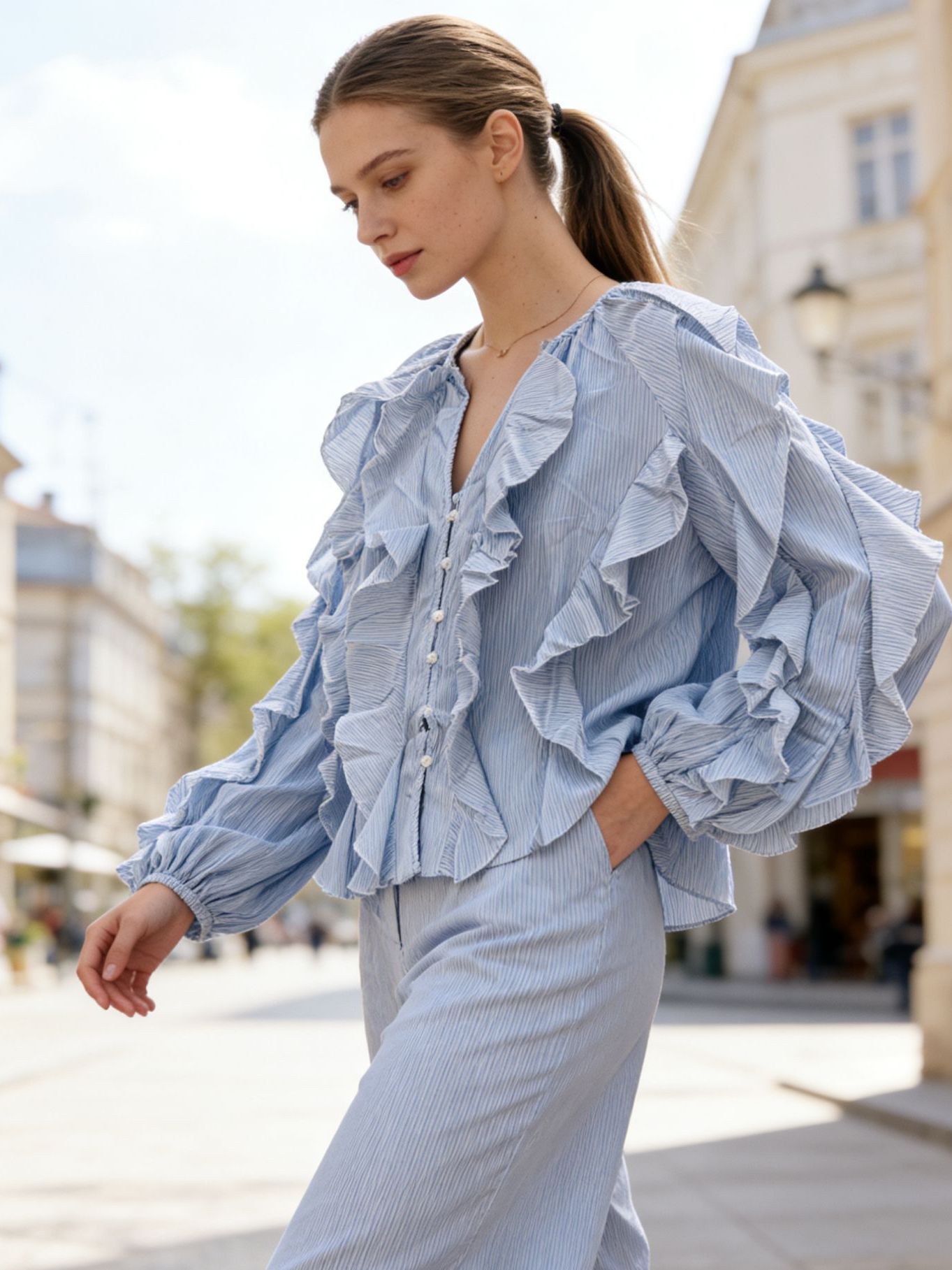 Pale blue striped blue blouse
