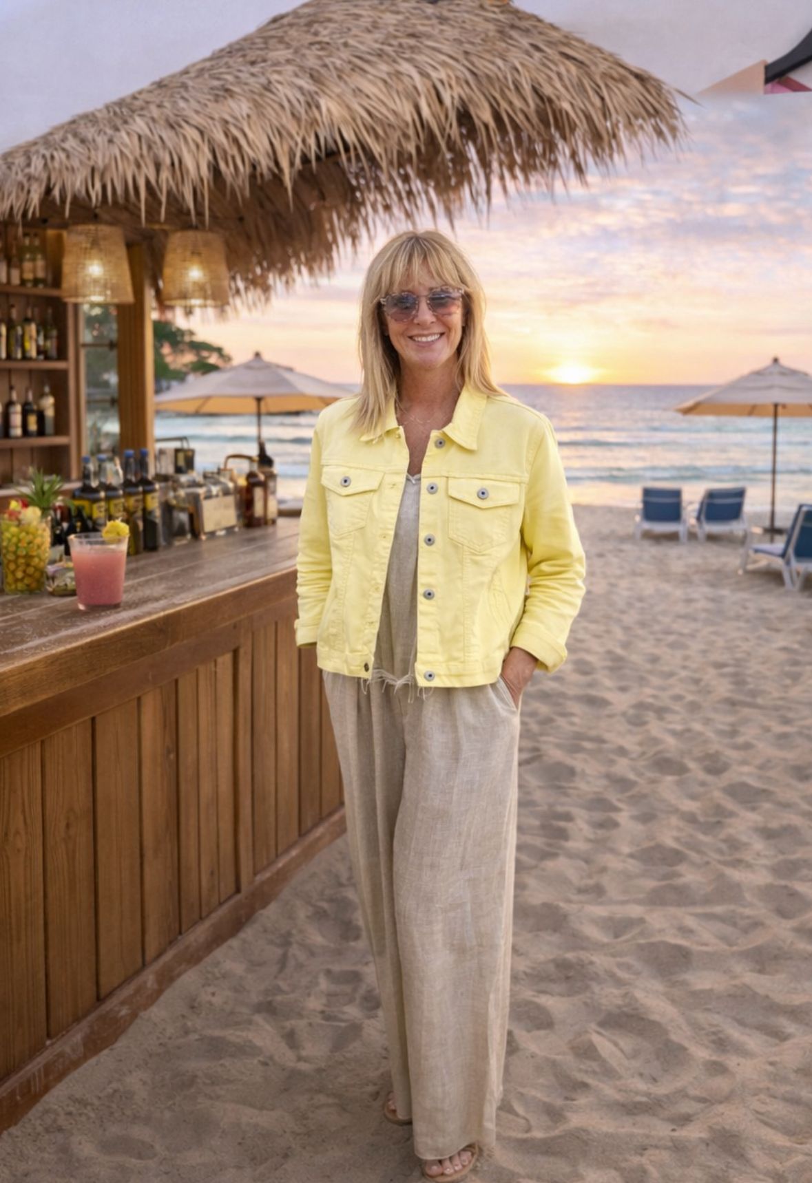 Yellow denim jacket with silver buttons